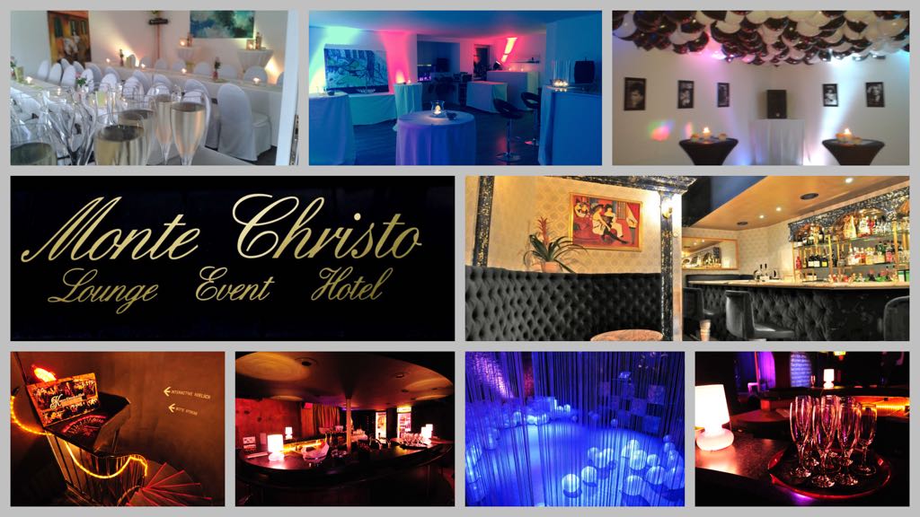 Das kleine Eventhotel Monte Christo im Herzen von Köln bietet 11 individuell gestaltete Zimmer und vier Eventräume (Champagnerlounge, Blau-goldene Bar, Club mit kleiner Bühne und Loft mit Terrasse). Hier übernachten von Messegästen bis hin zu Partyschwärmern! Gerne aber auch die Gäste der Gastgeber die im Haus feiern! Sehr praktisch alles in einem Haus und man hat für einen Abend und eine Nacht ein Hotel für sich alleine!